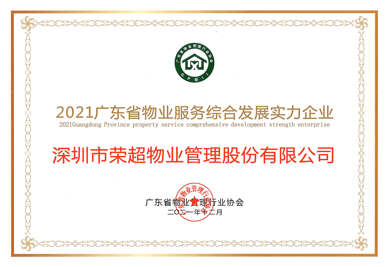 會上,廣東省物業管理行業協會發布了“2021廣東省物業服務綜合發展實力企業”榜單并為獲獎企業頒發榮譽證書,憑借雄厚的實力、穩健的經營能力,榮超物業榮登“2021廣東省物業服務綜合發展實力企業”榜單,再獲殊榮。